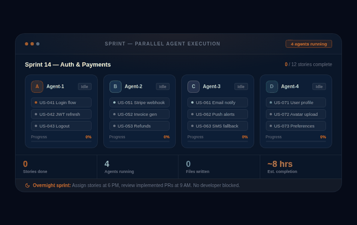 Run multiple agents in parallel across a sprint