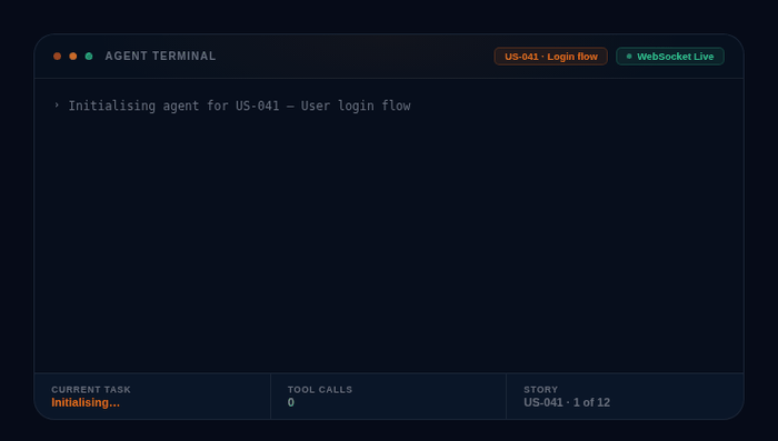 A live terminal streams the agent’s output via WebSocket as it runs — showing every tool call, file read, and decision in real time. Check the completion card when it’s done for a full summary of files changed, PR link, elapsed time, and token cost.